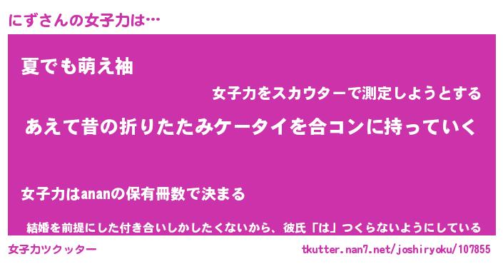 | ヘコむあだ名 | 『にずもー』『なまこ酢』『にずっぺ』 |