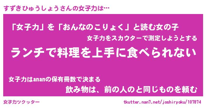 | ヘコむあだ名 | 『すずにー』『つくし』『すず太郎』 |