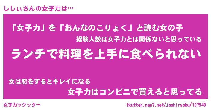 | 意味不明あだ名 | 『ペロリンししぃ』『ししぃフォーエバー』 |