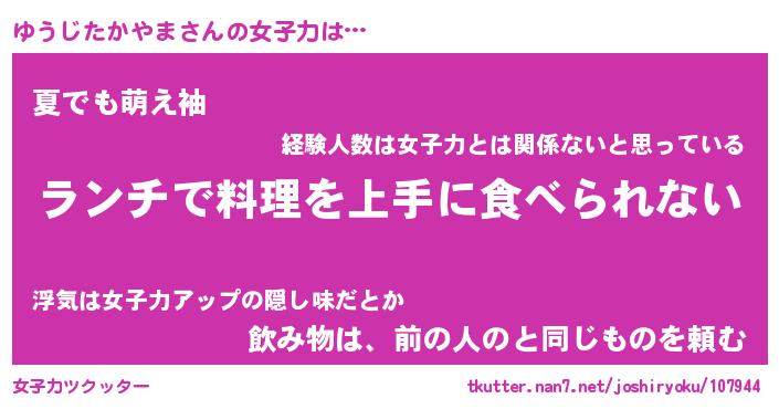 | 恥ずかしいあだ名 | 『プリティーゆうじたかやま』『ゆうちん』 |