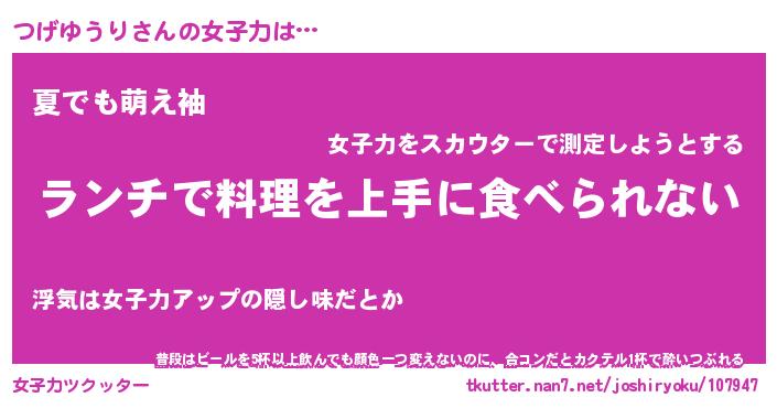 | ファンタジー風あだ名 | 『ツゲフェル』『エターナルツゲユウリー』 |