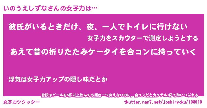 | 胡散臭い通販商品みたいなあだ名 | 『必ず成功するブレスレット…その名も「いのうえしずな」』 |