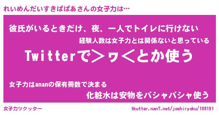 | 男性向けラノベタイトル風あだ名 | 『れいめんだいすきばばあの憂鬱』 |