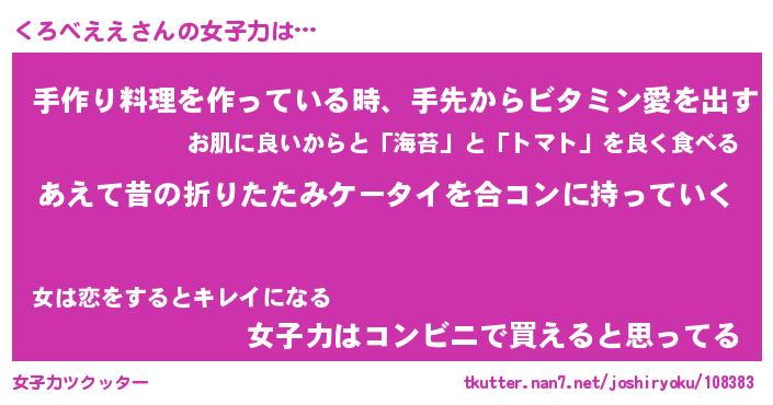 | ヘコむあだ名 | 『くろふぇ~』『なまこ酢』『くろを』 |