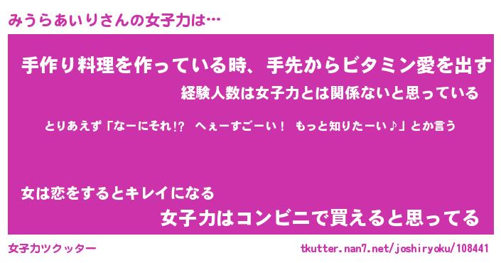 | 恥ずかしいあだ名 | 『プリティーみうらあいり』『みうっちょ』 |