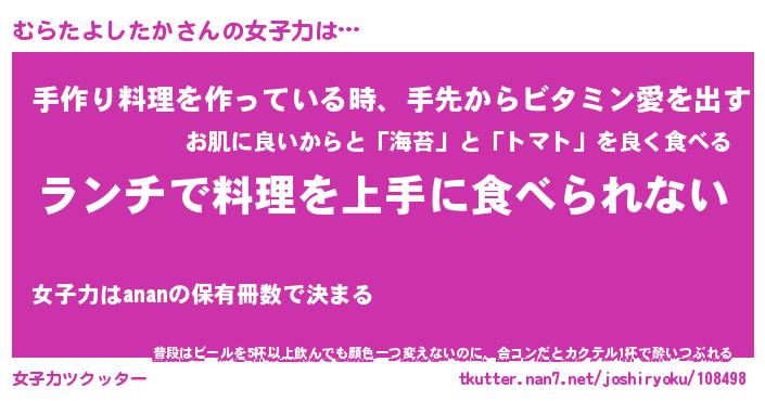 | 恥ずかしいあだ名 | 『プリティーむらたよしたか』『むらちん』 |