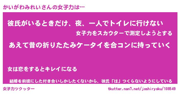 | 胡散臭い通販商品みたいなあだ名 | 『必ず成功する水晶球…その名も「かいがわみれい」』 |