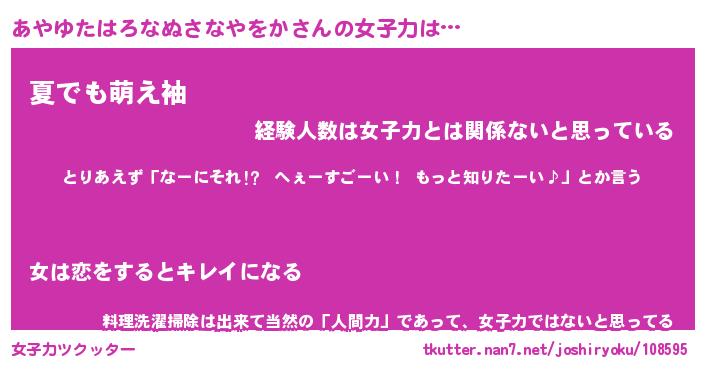 | ヘコむあだ名 | 『あやっふぃ~』『なまこ酢』 |