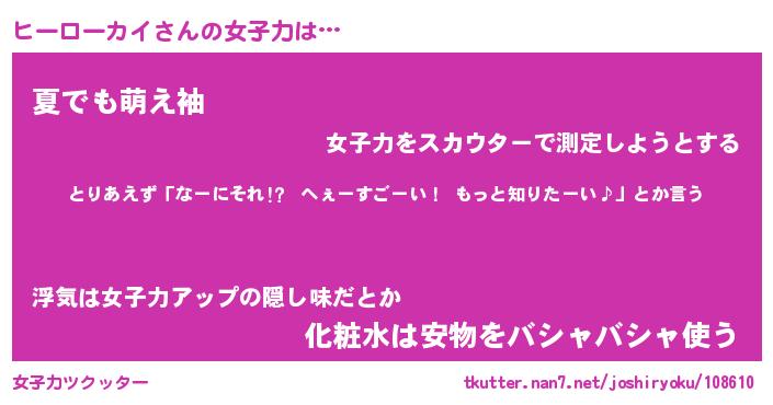 | 胡散臭い通販商品みたいなあだ名 | 『モテモテ間違いなしブレスレット…その名も「ヒーローカイ」』 |