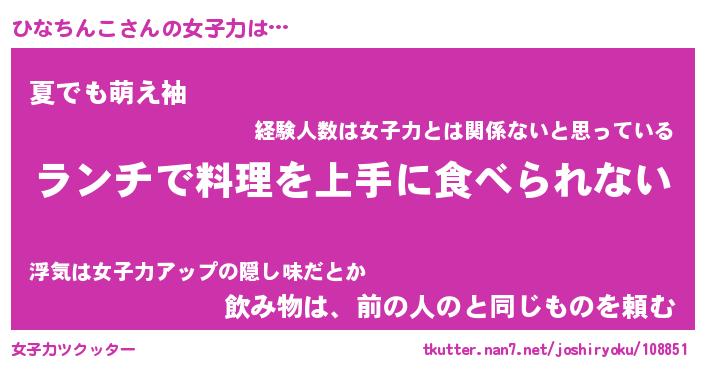 | ヘコむあだ名 | 『ひなにー』『なまこ酢』『ひな太郎』 |