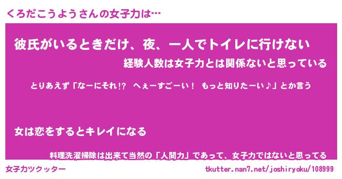 | ヘコむあだ名 | 『くろっふぃ~』『牛乳』『くろを』 |
