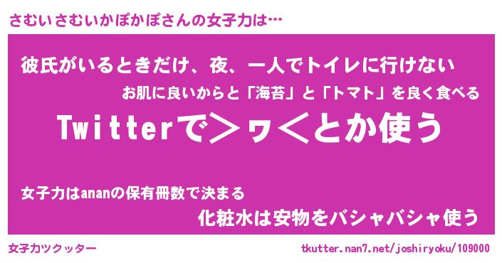 | 女子向けラノベタイトル風あだ名 | 『さむいさむいかぽかぽ姫と円卓の騎士』 |