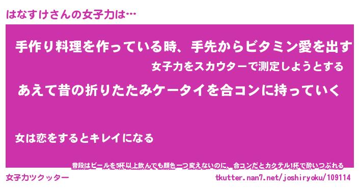 | ヘコむあだ名 | 『はなふぇ~』『つくし』 |