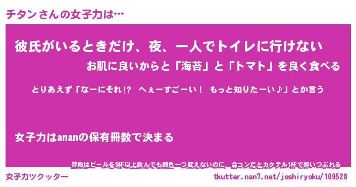 | ヘコむあだ名 | 『チタっふぃ~』『豆乳』 |