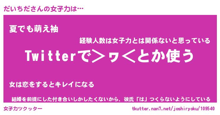 | ヘコむあだ名 | 『だいもー』『なまこ酢』 |