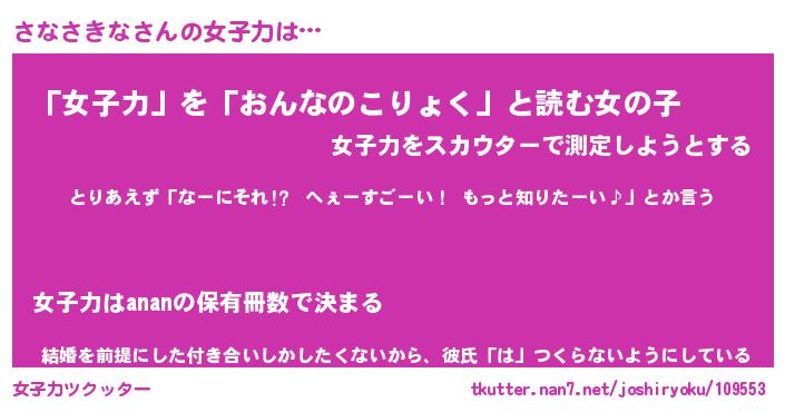 | ファンタジー風あだ名 | 『サナフェル』『エターナルサナサキナー』 |