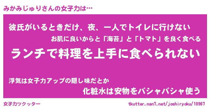 | 恥ずかしいあだ名 | 『プリティーみかみじゅり』『みかっちょ』 |