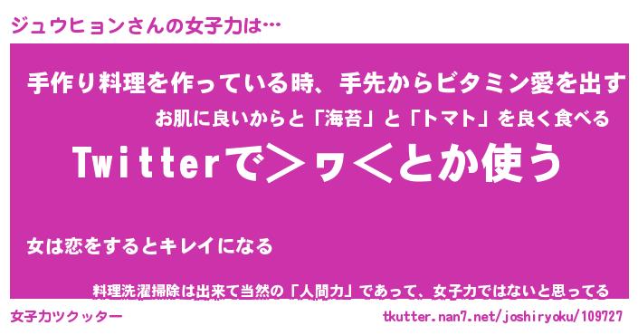 | 男性向けラノベタイトル風あだ名 | 『ジュウヒョンの憂鬱』 |