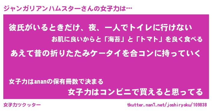 | 胡散臭い通販商品みたいなあだ名 | 『必ず成功する水晶球…その名も「ジャンガリアンハムスター」』 |