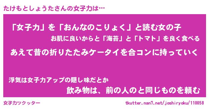 | ヒーロー風カッコイイあだ名 | 『スーパータケモトショウタ』 |