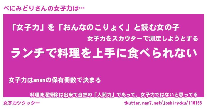 | ヘコむあだ名 | 『べにっふぃ~』『つくし』 |