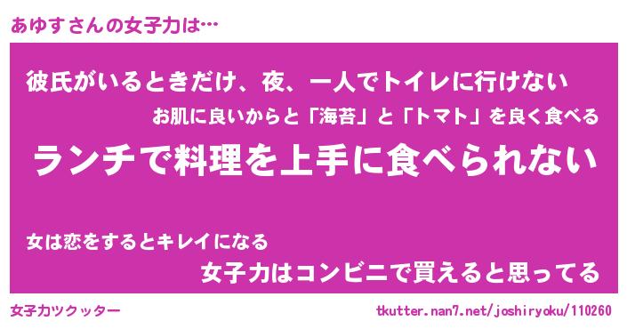 | ヘコむあだ名 | 『あゆもー』『豆乳』『あゆっぺ』 |