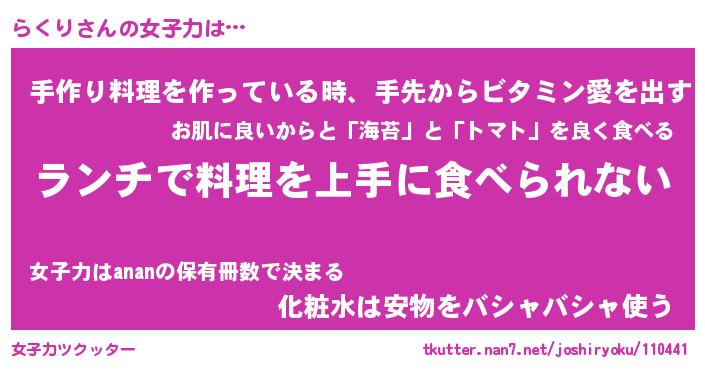 | ヘコむあだ名 | 『らくっふぃ~』『つくし』 |