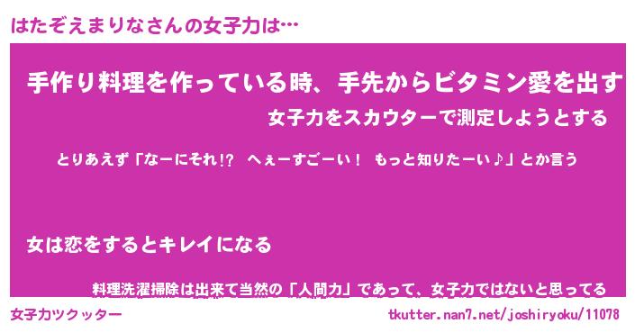 | 恥ずかしいあだ名 | 『プリティーはたぞえまりな』『はたちん』 |