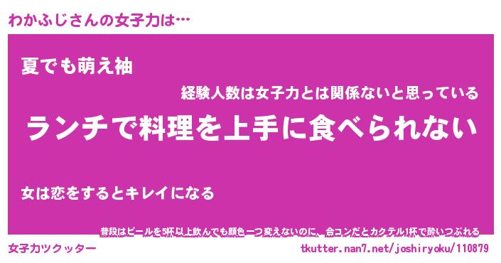 | ヘコむあだ名 | 『わかっふぃ~』『つくし』『わかを』 |