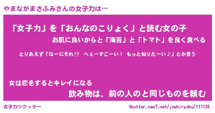| ヘコむあだ名 | 『やまにー』『なまこ酢』『やまを』 |