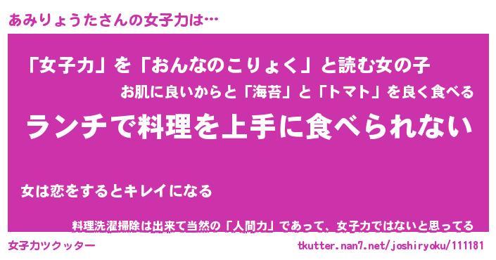 | ヘコむあだ名 | 『あみにー』『なまこ酢』『あみお』 |