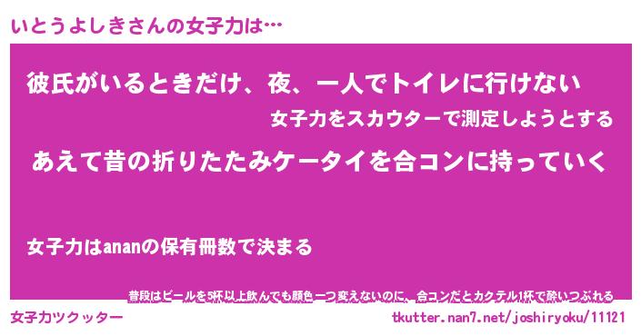 | ヘコむあだ名 | 『いとふぇ~』『なまこ酢』 |