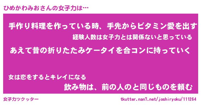 | 胡散臭い通販商品みたいなあだ名 | 『必ず成功する霊験あらたかなお札…その名も「ひめかわみお」』 |