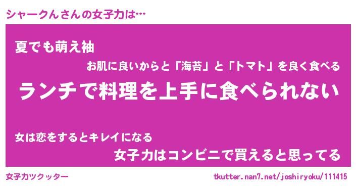 | ヘコむあだ名 | 『シャっふぃ~』『なまこ酢』 |