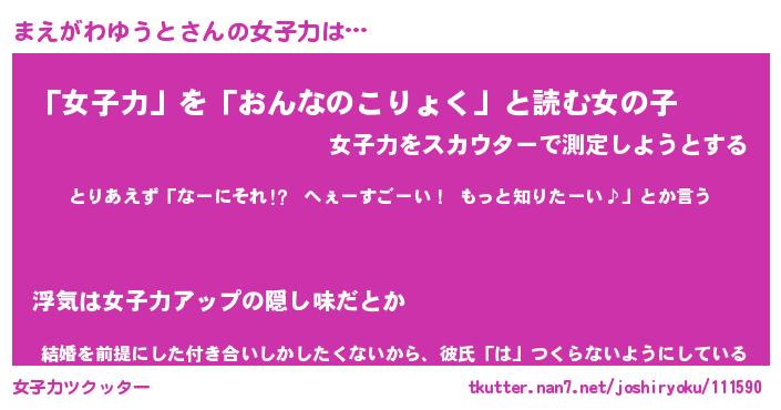 | 胡散臭い通販商品みたいなあだ名 | 『モテモテ間違いなし水晶球…その名も「まえがわゆうと」』 |