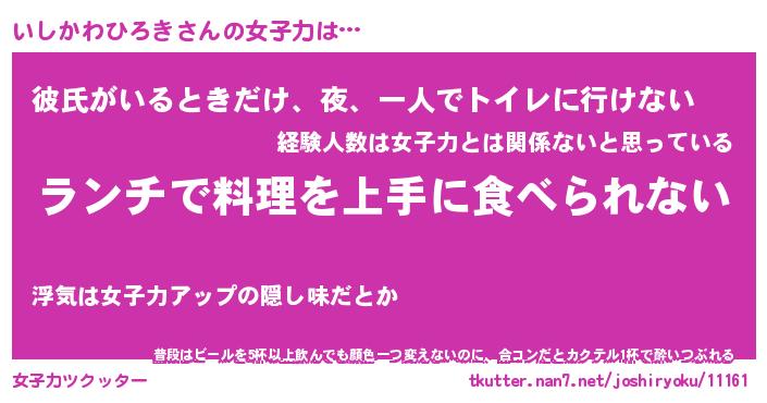 | 恥ずかしいあだ名 | 『プリティーいしかわひろき』『いしちん』 |