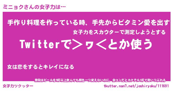 | 意味不明あだ名 | 『ペロリンミニョク』『永久保存ミニョク』 |