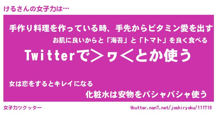 | 意味不明あだ名 | 『ペロリンける』『けるフォーエバー』 |