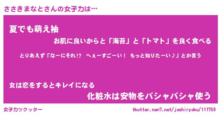 | 恥ずかしいあだ名 | 『プリティーささきまなと』『ささっちょ』 |