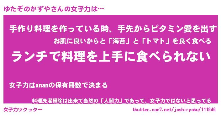 | 恥ずかしいあだ名 | 『プリティーゆたぞのかずや』『ゆたちん』 |