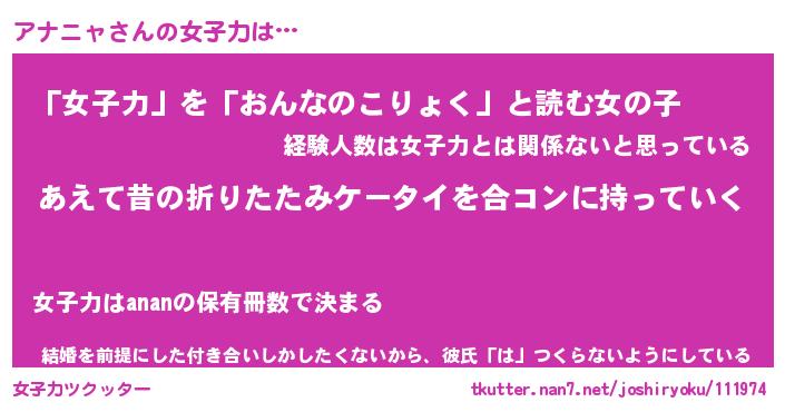 | 意味不明あだ名 | 『ペロリンアナニャ』『永久保存アナニャ』 |