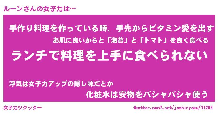 | ヘコむあだ名 | 『ルーもー』『つくし』『ルーお』 |