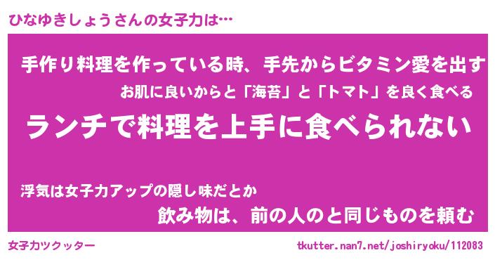 | ヘコむあだ名 | 『ひなふぇ~』『牛乳』『ひなを』 |