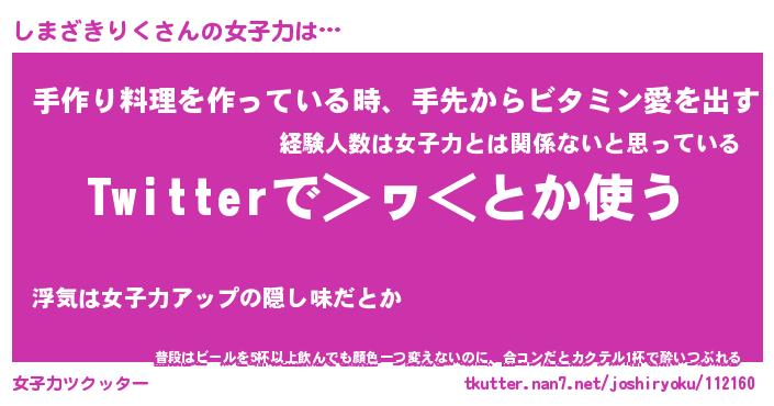 | 恥ずかしいあだ名 | 『プリティーしまざきりく』『しまっちょ』 |