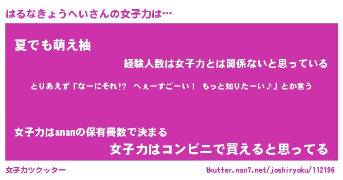| 肩書あだ名 | 『はるなきょうへい御曹司』 |
