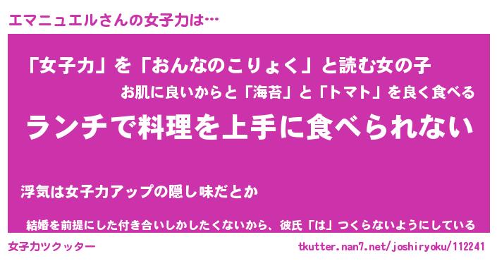 | ヘコむあだ名 | 『エマにー』『牛乳』『エマぷりん』 |