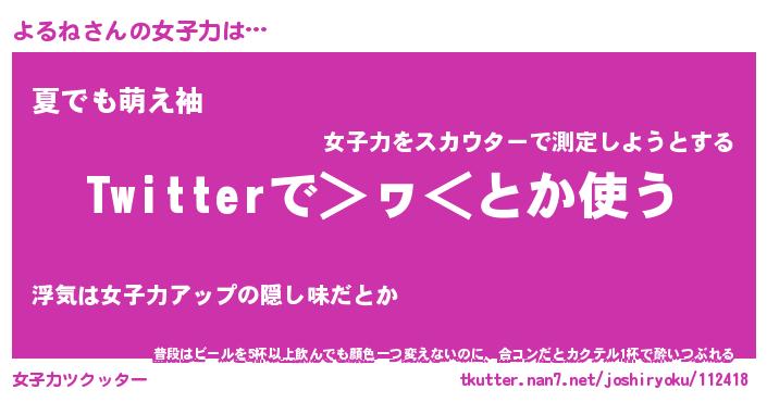 | ヘコむあだ名 | 『よるにー』『つくし』『よる太郎』 |