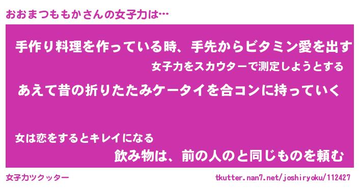 | 胡散臭い通販商品みたいなあだ名 | 『必ず成功する霊験あらたかなお札…その名も「おおまつももか」』 |