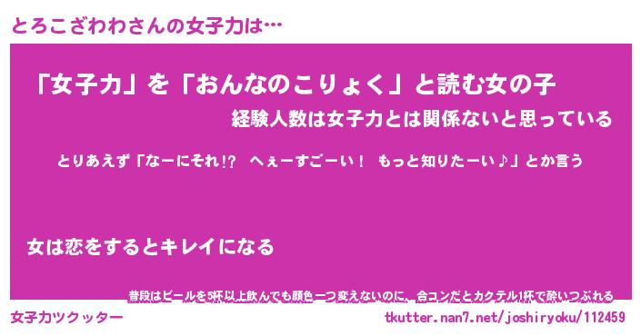 | ヘコむあだ名 | 『とろにゅー』『レバニラ』『とろを』 |
