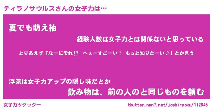 | 女子向けラノベタイトル風あだ名 | 『ティラノサウルス姫と円卓の騎士』 |